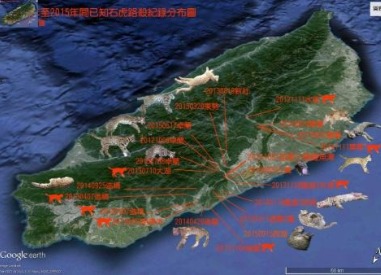 2012年至2015年間已知石虎路殺紀錄分布圖 (李璟泓 提供)